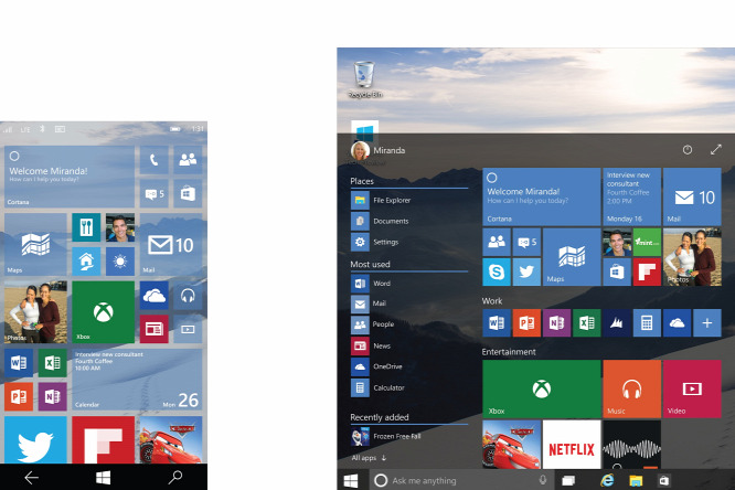 Nem. A PC-s és az okostelefonos Windows 10 (az azonos név ellenére) nagyon eltérő rendszerek. Ugyan hasonló kernel dolgozik mindkettő alatt és mindkettő képes WinRT futtatókörnyezetet használó alkalmazásokat futtatni, a hasonlóságok itt gyakorlatilag véget is érnek. A telefonos rendszert értelemszerűen a telefonos működéshez optimalizálta a cég, a memóriamenedzsmenttől az energiatakarékos működésig minden a telefonos környezethez igazodik. Ez természetesen a felhasználói felületre is kiterjed, amely még "univerzális appok" esetén is más képet mutat tableten/PC-n, mint telefonon.
